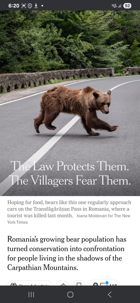 Bears Are Terrorizing Romania. It’s Humans’ Fault. – The New York Times https://share.google/9figah46czuBzv7pQ