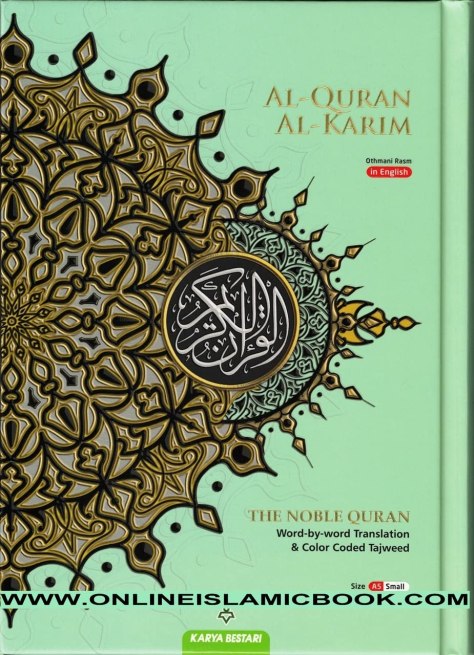Comes in different colours according to availability. Maqdis Word-By-Word Translation & Color Coded Tajweed (Arabic-English) small 5-7/8 x 8-1/4 inch Al-Quran Al-Kareem Maqdis is a translation learning method of word-by-word Al-Quran with every word and sentence is colored differently, in Arabic and English. Every word in the Quran was translated literally so that the reader could understand the meaning of every single word. It needs to be remembered that not all literal translation represents the exact meaning of the word since the Quran uses varied Arabic language style and sometimes metaphor. Accordingly, to understand the full or intended meaning of the word or the verse, Muhsin Khan’s the Holy Quran Translation had been included in this edition. However, to comprehend more of the meaning of the Quran, reading the commentary of the Quran from trusted scholars would be necessary. Approved by the Department of Islamic Development of Malaysia (JAKIM) and Malaysian;