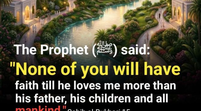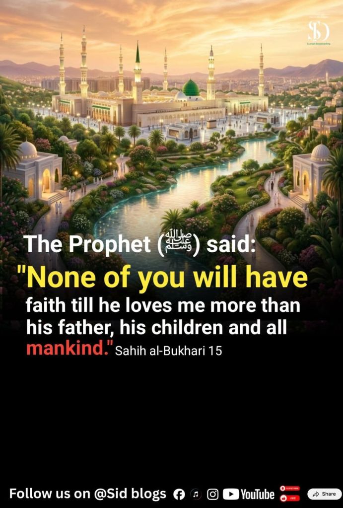 The Prophet (ﷺ) said “None of you will have faith till he loves me more than his father, his children and all mankind.”