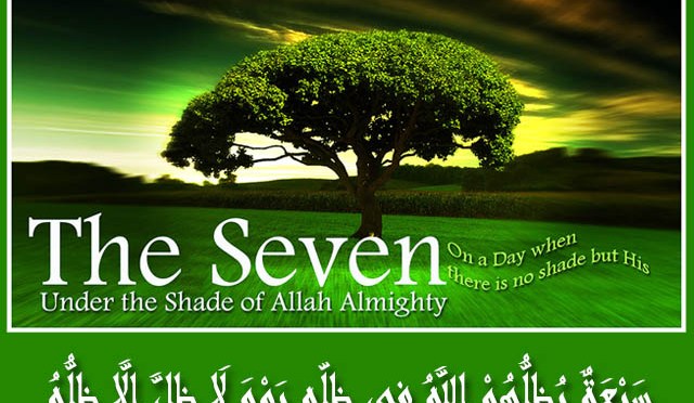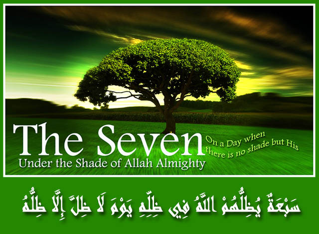 وعنه قال: قال رسول الله ، صلى الله عليه وسلم:”سبعة يظلهم الله في ظله يوم لا ظل إلا ظله: إمام عادل، وشاب نشأ في عبادة الله ، ورجل قلبه معلق في المساجد، ورجلان تحابا في الله، اجتمعا عليه، وتفرقا عليه، ورجل دعته امرأة ذات منصب وجمال، فقال: إنى أخاف الله، ورجل تصدق بصدقة فأخفاها حتى لا تعلم شماله ما تنفق يمينه، ورجل ذكر الله خالياً ففاضت عيناه” ((متفق عليه)) .